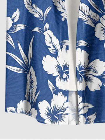 Plus Size Hibiscus Flower Tropical Leaf Print Buttons Pocket Hawaii Shirt For Men - Sky Blue - 2xl