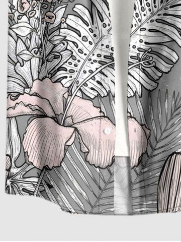 Plus Size Hibiscus Flower Tropical Leaf Print Buttons Pocket Hawaii Shirt For Men - Dark Gray - S