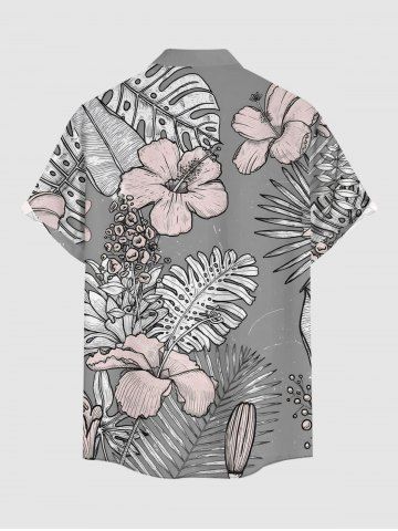 Plus Size Hibiscus Flower Tropical Leaf Print Buttons Pocket Hawaii Shirt For Men - Dark Gray - 3xl