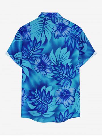 Plus Size Hibiscus Flower Tropical Leaf Print Hawaii Button Pocket Shirt For Men - Blue - 4xl