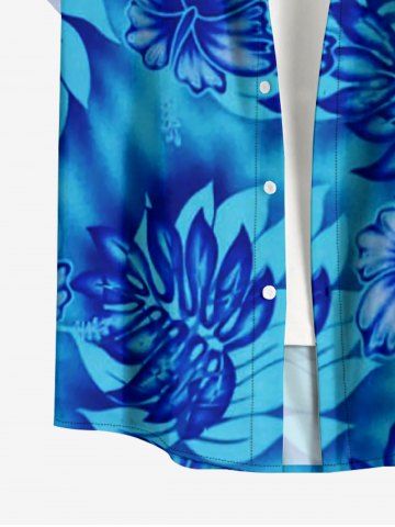 Plus Size Hibiscus Flower Tropical Leaf Print Hawaii Button Pocket Shirt For Men - Blue - 6xl
