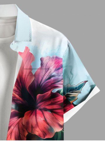 Short Sleeves Shirts > Plus Size Hibiscus Flower Tropical Leaf Watercolor Print Buttons Pocket Hawaii Shirt For Men