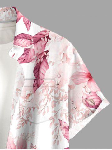 Plus Size Hibiscus Flower Tropical Print Buttons Pocket Hawaii Shirt For Men - Pink - 2xl