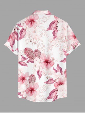 Plus Size Hibiscus Flower Tropical Print Buttons Pocket Hawaii Shirt For Men - Pink - 5xl