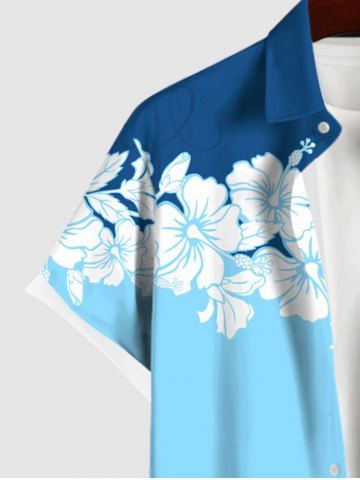 Plus Size Hibiscus Flowers Colorblock Print Buttons Pocket Hawaii Shirt For Men - Blue - 4xl