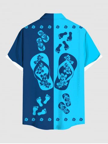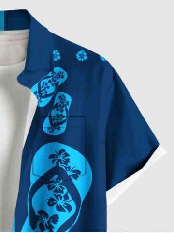Plus Size Hibiscus Flowers Flip Flops Colorblock Feet Print Buttons Pocket Hawaii Shirt For Men - Blue - S