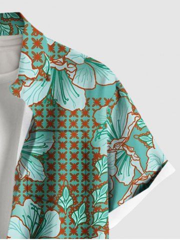 Plus Size Hibiscus Flowers Leaf Print Buttons Pocket Hawaii Shirt For Men - Green - 2xl