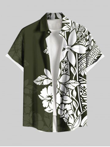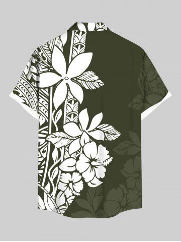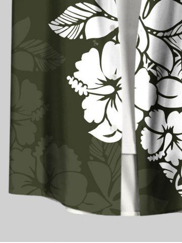 Plus Size Hibiscus Flowers Leaf Print Buttons Pocket Hawaii Shirt For Men - Army Green - 6xl