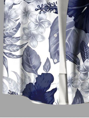 Plus Size Hibiscus Flowers Leaf Print Buttons Pocket Hawaii Shirt For Men - White - 4xl