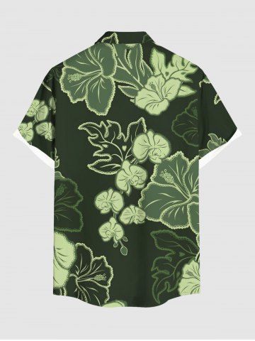 Plus Size Hibiscus Flowers Leaf Print Buttons Pocket Hawaii Shirt For Men - Green - S