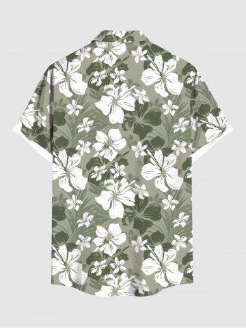 Plus Size Hibiscus Flowers Leaf Print Buttons Pocket Hawaii Shirt For Men - Green - 6xl