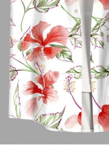 Plus Size Hibiscus Flowers Leaf Print Buttons Pocket Hawaii Shirt For Men - White - L