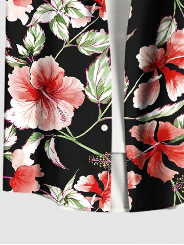 Plus Size Hibiscus Flowers Leaf Print Buttons Pocket Hawaii Shirt For Men - Black - Xl