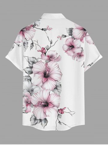Plus Size Hibiscus Flowers Leaf Print Buttons Pocket Hawaii Shirt For Men - White - 2xl