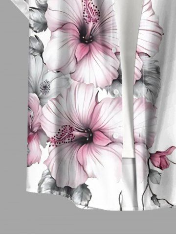 Plus Size Hibiscus Flowers Leaf Print Buttons Pocket Hawaii Shirt For Men - White - 5xl