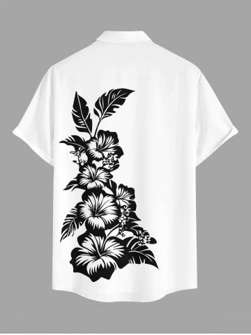 Plus Size Hibiscus Flowers Leaf Print Buttons Pocket Hawaii Shirt For Men - White - S