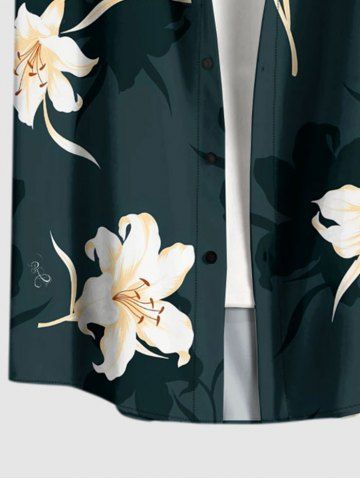 Short Sleeves Shirts > Plus Size Hibiscus Flowers Leaf Print Buttons Pocket Hawaii Shirt For Men
