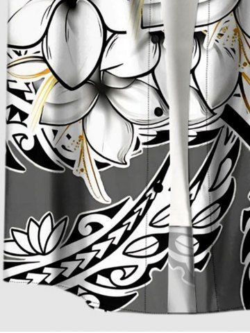 Plus Size Hibiscus Flowers Leaf Print Buttons Pocket Hawaii Shirt For Men - Gray - S