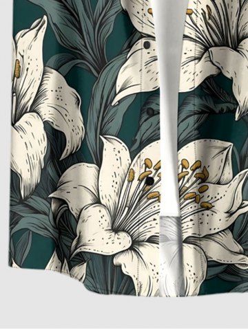 Plus Size Hibiscus Flowers Leaf Print Buttons Pocket Hawaii Shirt For Men - Deep Green - 4xl