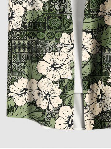 Plus Size Hibiscus Flowers Leaf Scarf Print Buttons Pocket Hawaii Shirt For Men - Green - 6xl