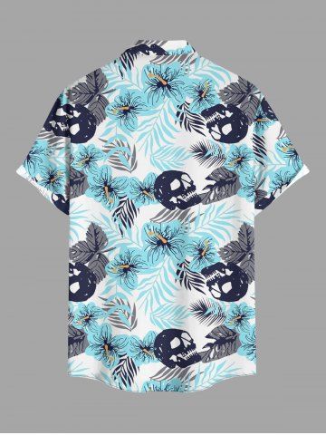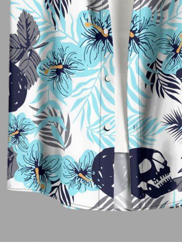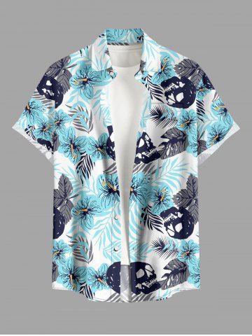 Plus Size Hibiscus Flowers Leaf Skulls Print Buttons Pocket Hawaii Shirt For Men - Sky Blue - 4xl