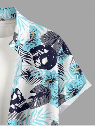 Plus Size Hibiscus Flowers Leaf Skulls Print Buttons Pocket Hawaii Shirt For Men - Sky Blue - 5xl