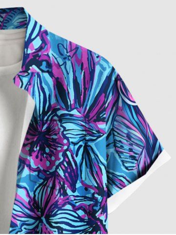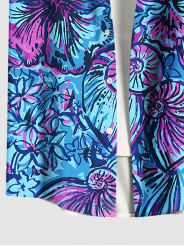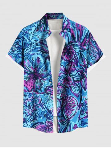 Plus Size Hibiscus Flowers Leaf Snail Print Buttons Pocket Hawaii Shirt For Men - Sky Blue - M