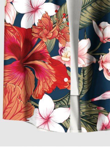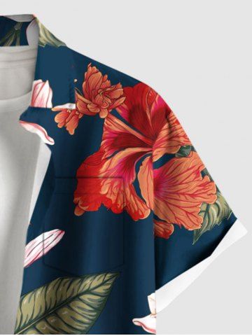 Short Sleeves Shirts > Plus Size Hibiscus Flowers Leaf Tropical Print Buttons Pocket Hawaii Shirt For Men