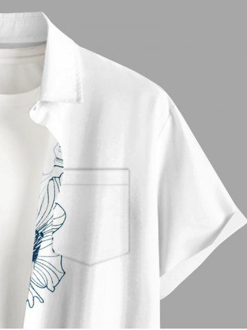 Plus Size Hibiscus Flowers Print Buttons Pocket Hawaii Shirt For Men - White - 2xl