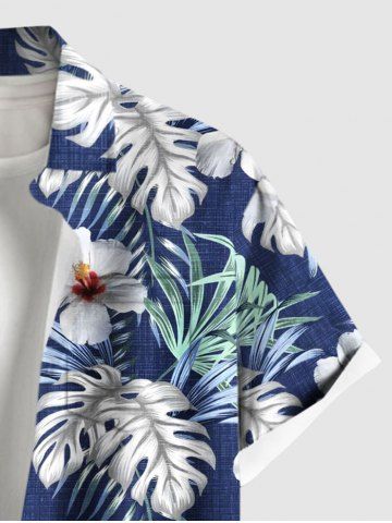 Plus Size Hibiscus Flowers Tropical Leaf Print Buttons Pocket Hawaii Shirt For Men - Blue - 4xl