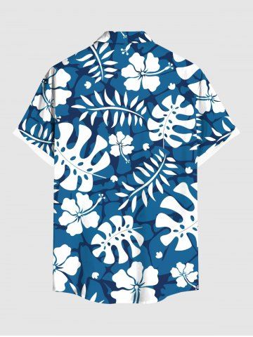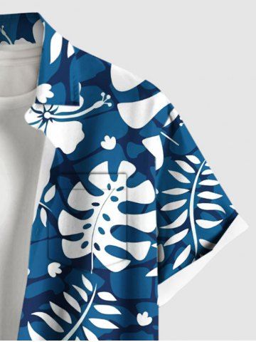 Plus Size Hibiscus Flowers Tropical Leaf Print Buttons Pocket Hawaii Shirt For Men - Blue - S