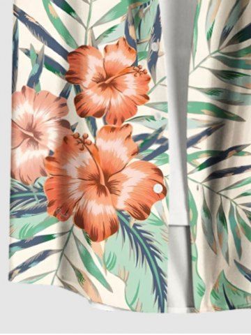 Plus Size Hibiscus Flowers Tropical Leaf Print Buttons Pocket Hawaii Shirt For Men - Green - L