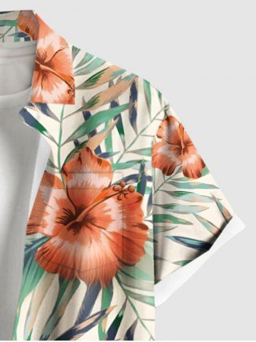 Short Sleeves Shirts > Plus Size Hibiscus Flowers Tropical Leaf Print Buttons Pocket Hawaii Shirt For Men