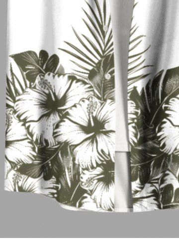 Plus Size Hibiscus Flowers Tropical Leaf Print Buttons Pocket Hawaii Shirt For Men - Green - 5xl