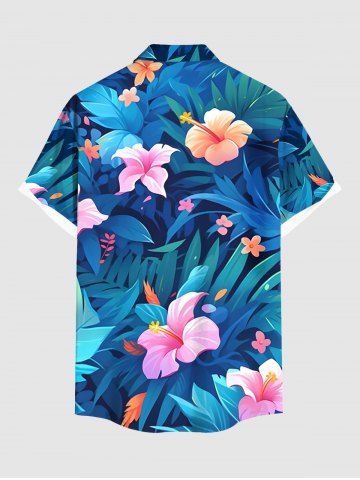 Short Sleeves Shirts > Plus Size Hibiscus Flowers Tropical Leaf Print Buttons Pocket Hawaii Shirt For Men