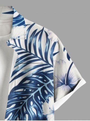 Plus Size Hibiscus Flowers Tropical Leaf Print Buttons Pocket Hawaii Shirt For Men - White - L