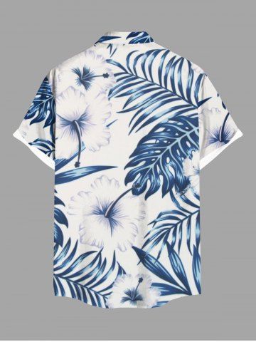 Plus Size Hibiscus Flowers Tropical Leaf Print Buttons Pocket Hawaii Shirt For Men - White - 2xl