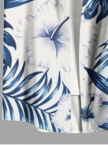 Plus Size Hibiscus Flowers Tropical Leaf Print Buttons Pocket Hawaii Shirt For Men - White - 5xl
