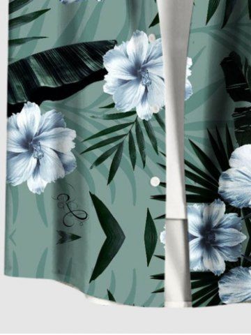 Plus Size Hibiscus Flowers Tropical Leaf Print Buttons Pocket Hawaii Shirt For Men - Green - L