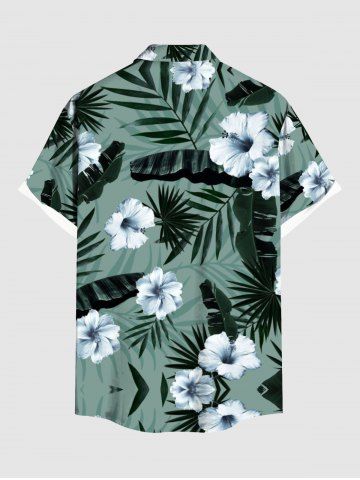 Plus Size Hibiscus Flowers Tropical Leaf Print Buttons Pocket Hawaii Shirt For Men - Green - Xl