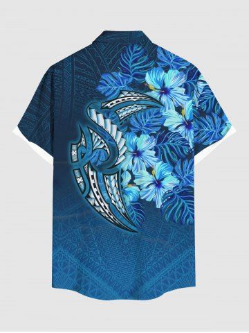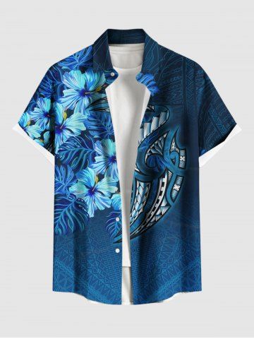 Plus Size Hibiscus Flowers Tropical Leaf Print Buttons Pocket Hawaii Shirt For Men - Sky Blue - 5xl