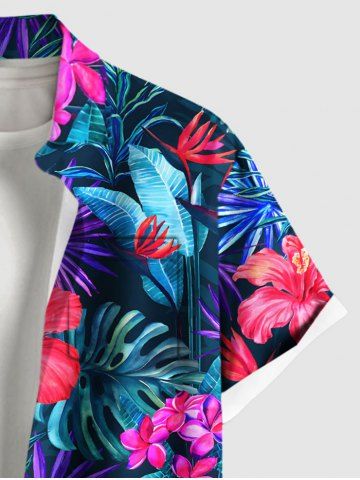 Short Sleeves Shirts > Plus Size Hibiscus Flowers Tropical Leaf Print Buttons Pocket Hawaii Shirt For Men