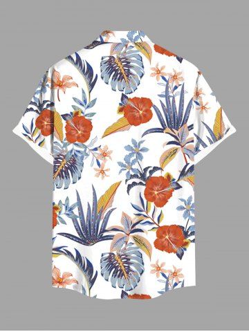 Plus Size Hibiscus Flowers Tropical Leaf Print Buttons Pocket Hawaii Shirt For Men - White - M
