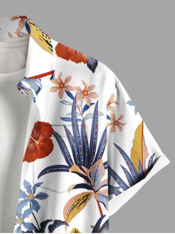 Plus Size Hibiscus Flowers Tropical Leaf Print Buttons Pocket Hawaii Shirt For Men - White - 5xl