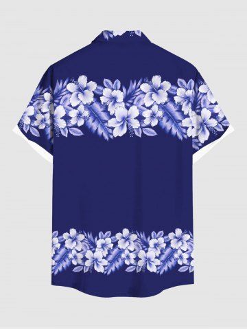 Plus Size Hibiscus Flowers Tropical Leaf Print Buttons Pocket Hawaii Shirt For Men - Blue - L