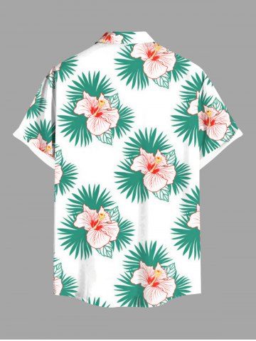 Plus Size Hibiscus Flowers Tropical Leaf Print Buttons Pocket Hawaii Shirt For Men - Green - Xl