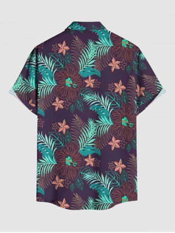 Plus Size Hibiscus Flowers Tropical Leaf Print Buttons Pocket Hawaii Shirt For Men - Concord - M