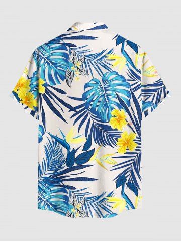 Plus Size Hibiscus Flowers Tropical Leaf Print Buttons Pocket Hawaii Shirt For Men - Sky Blue - S