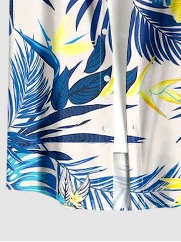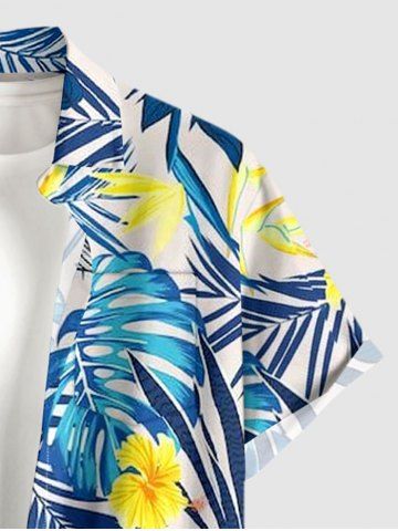 Short Sleeves Shirts > Plus Size Hibiscus Flowers Tropical Leaf Print Buttons Pocket Hawaii Shirt For Men
