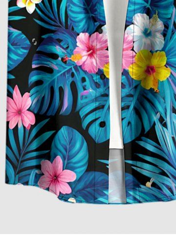 Plus Size Hibiscus Flowers Tropical Leaf Print Buttons Pocket Hawaii Shirt For Men - Blue - 5xl